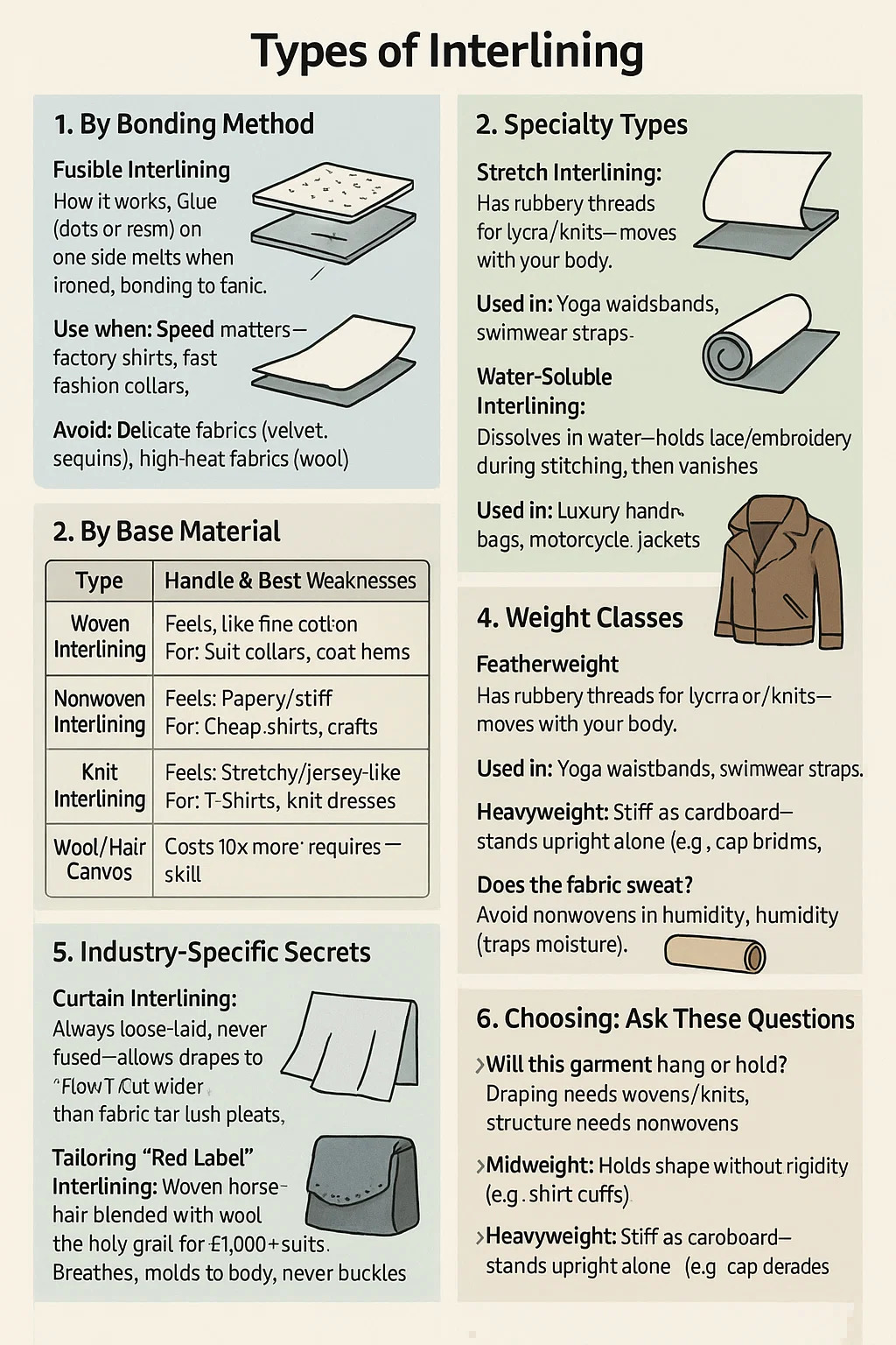 | 부직포 심지 | • 느낌: 종이 같고 딱딱함• 대상: 저렴한 셔츠, 공예품 | 젖으면 눈물이 난다. 판지 드레이프 |